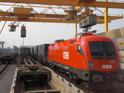 Aktuell laufen ab DKT Duisburg täglich zwei Züge nach Italien – einer von Hupac nach Busto Arsizio und ein zweiter eines anderen Operateurs nach Novara. Mit dem neuen Kran kommt ab Juni 2011 eine weitere tägliche Zugverbindung nach Schwarzheide dazu. Das wird der erste Zug sein, der zwischen zwei eigenen Terminals der Bertschi- Gruppe verkehrt – ich denke ein historisches Ereignis, sagte Herr Dr. Bertschi!
